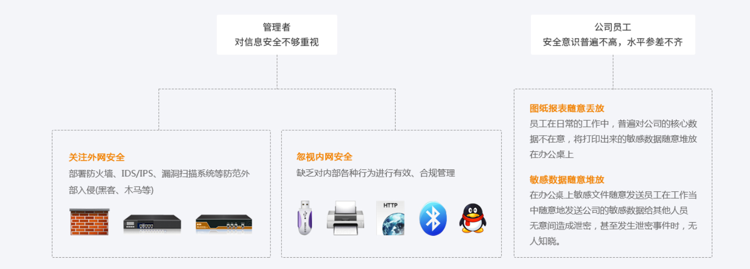 灵活全面的加密模式、严苛的防冒充控制技术、细粒度的端口与外设管理、文件级別的权限控制(DRM)、智能化的日志审计与报表分析为企业构建强有力的安全防护屏障;从软件架构开始,每个应用场景、每个技术细节我们都为您考虑周全,在安全的同时也要确保系統的稳定性和兼容性